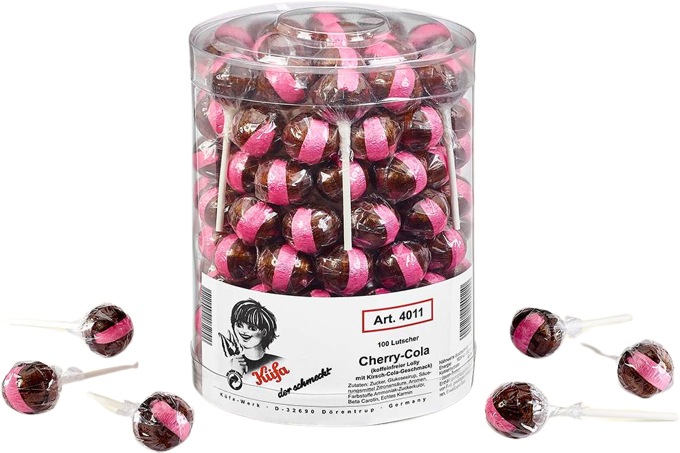 Küfa Cherry-Cola-Lolly Lutscher mit Kirsch-Cola-Geschmack in 100er Dose