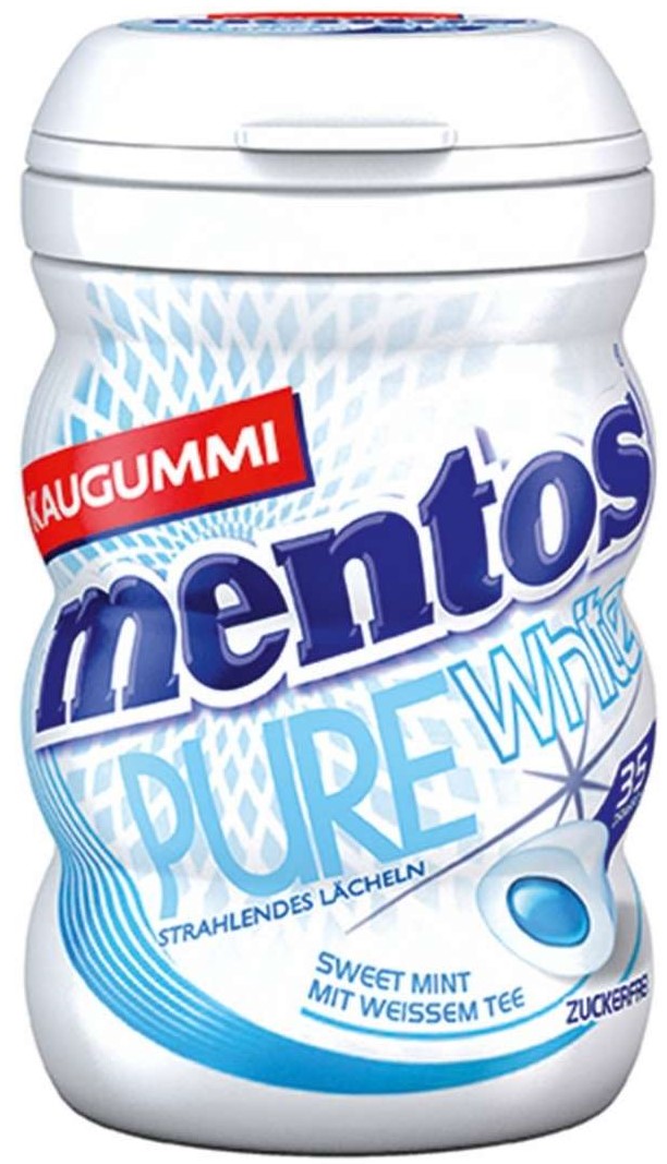 Mentos Gum Pure White zuckerfrei Kaugummi-Dragees mit Minz-Geschmack und flüssiger Füllung mit Weißtee-Extrakt 70g 35er Dose