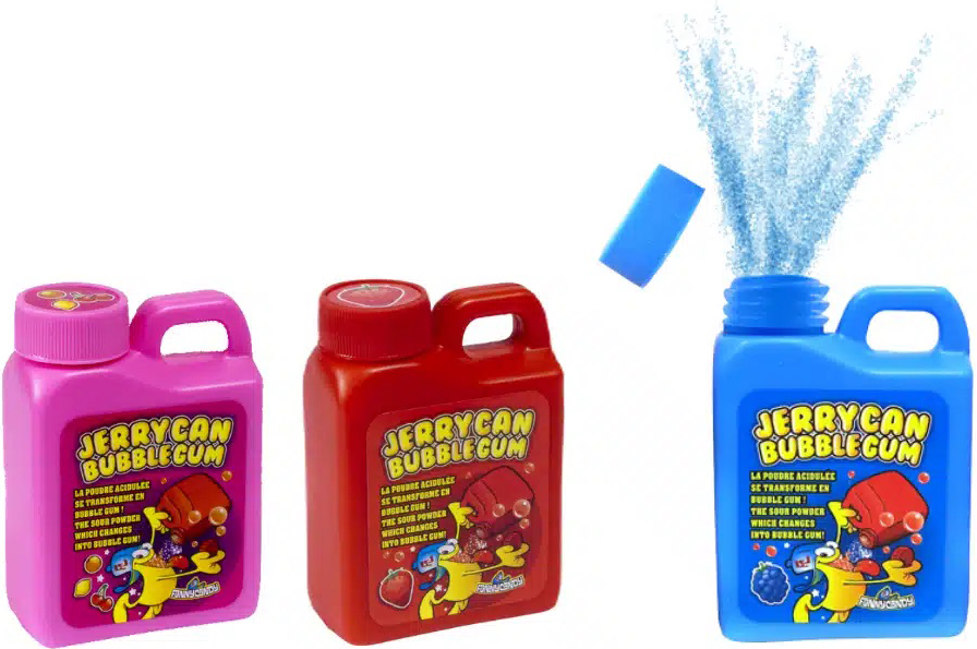 Funny Candy Jerrycan Sour Bubblegum Powder, saures Kaugummi Puder in kleinen Kan