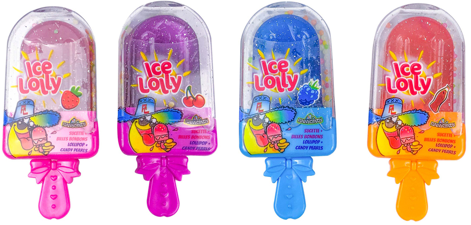 Ice Lolly Funny Candy 16gr 4/s ca. 9cm (Strawberry, Cherry, Brombeere, Cola) in