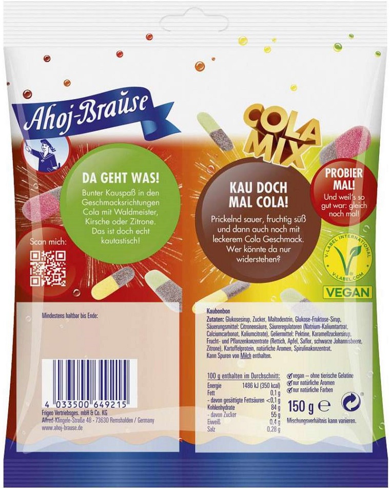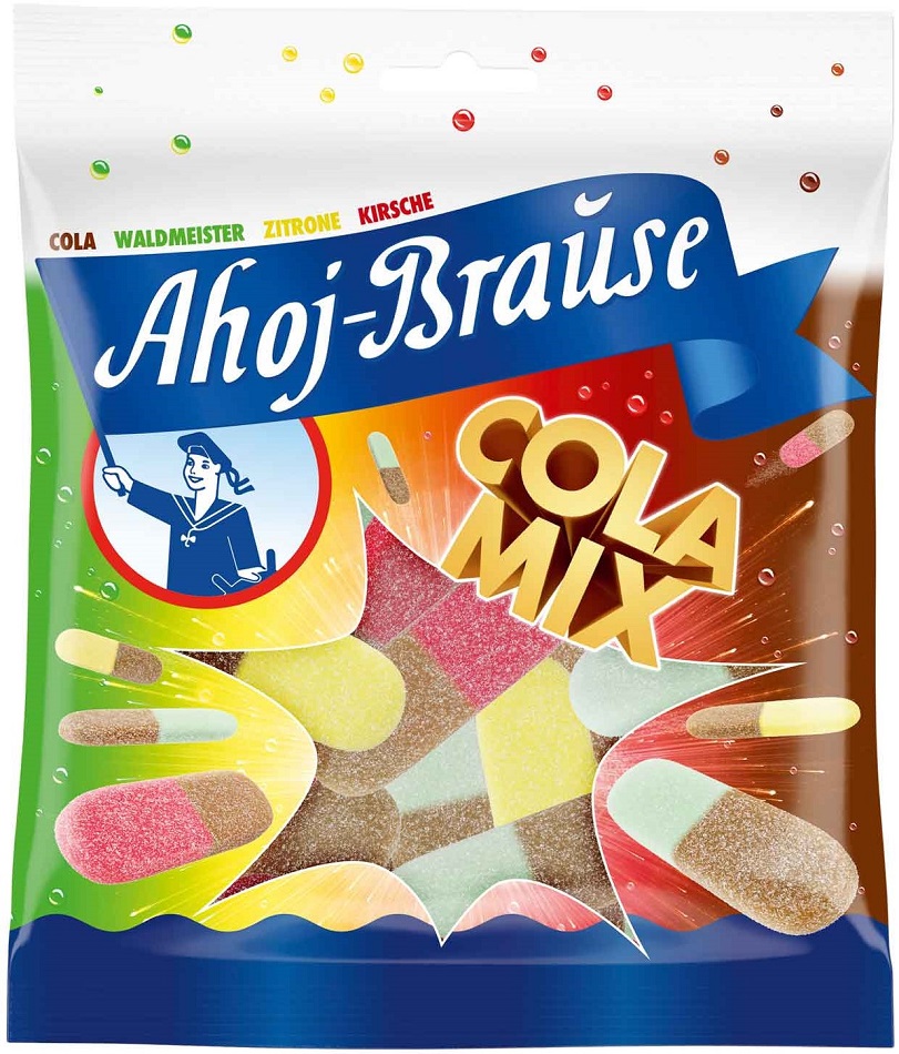 Ahoj-Brause Kaubonbons COLA MIX mit Waldmeister, Zitrone und Kirsche Vegan in 15