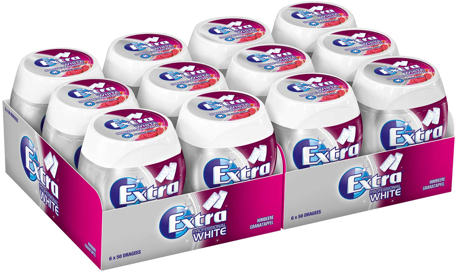 Wrigley´s Extra Professional White mit Himbeere- und Granatapfel-Geschmack 50 zuckerfreie Dragees pro Dose in 12er T-Dsp.