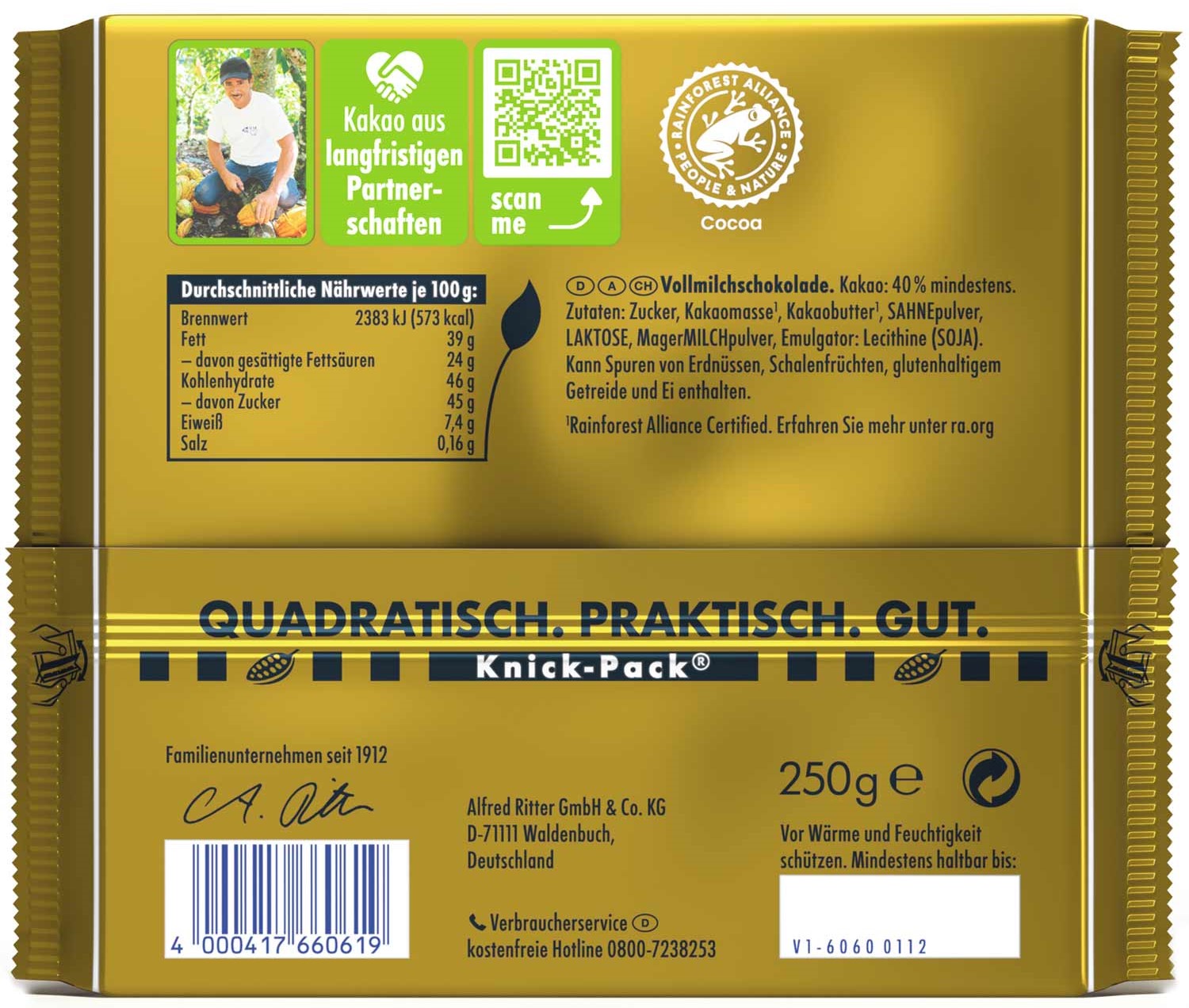 Ritter Sport Goldschatz Vollmilchschokolade 40% 250g