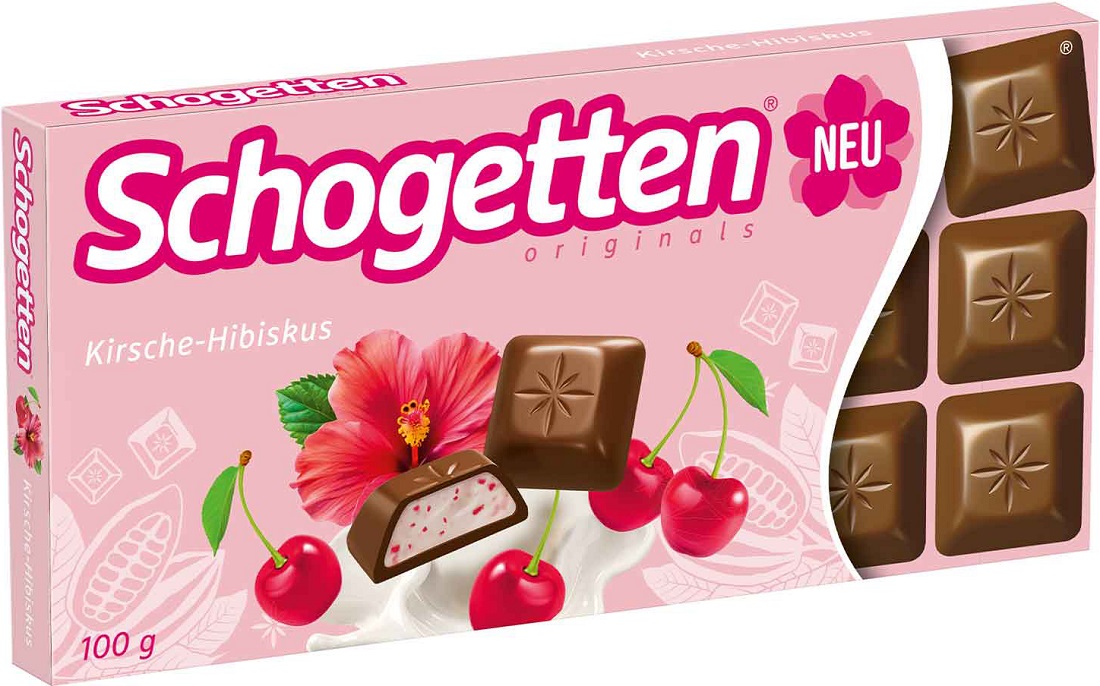 Schogetten Kirsche-Hibiskus 100g - Vollmilch Schokolade mit Kirsch-Hibiskus Füllung