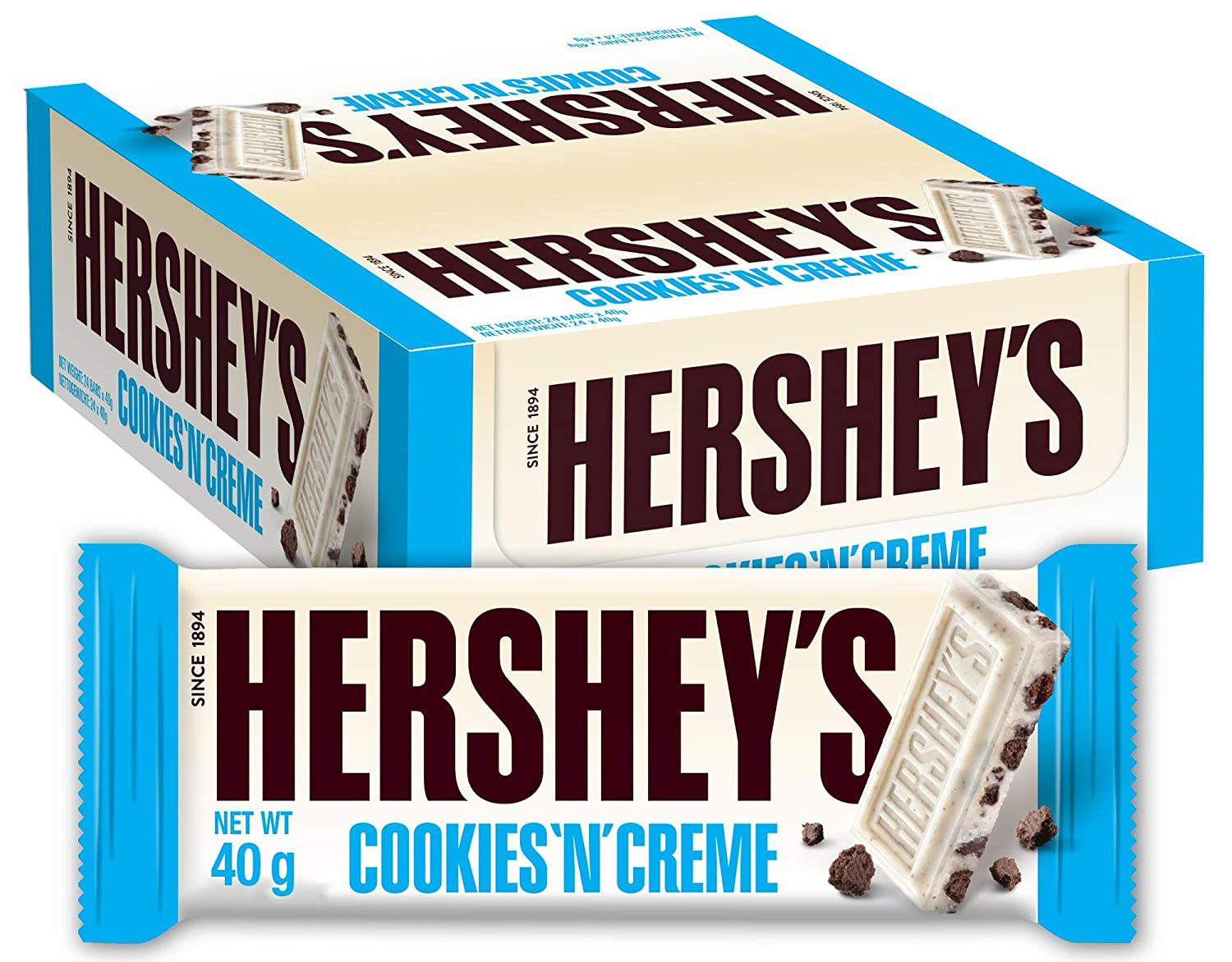 Hershey's Cookies'n'Creme Weiße Schokolade mit Schokokeksstückchen 40g 24er T-Ds