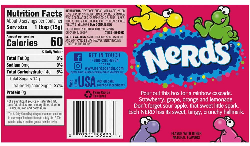 NERDS Rainbow Mini-Dragees mit Erbeer-, Trauben-, Orangen-, Zitronen- und saurem-Apfel-Geschmack 141,7g 12er T-Dsp.