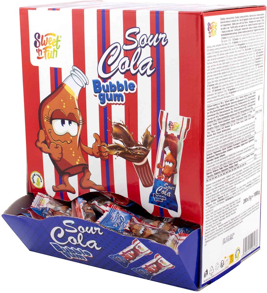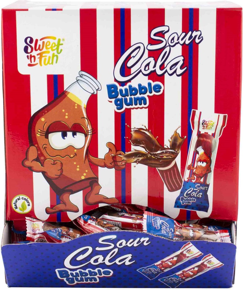 Sweet´n´Fun Sour Cola Bottle Bubblegum Kaugummis in Cola-Flschen Form mit Cola Geschmack und saurem Kern á 5g im 200er T-Dsp.