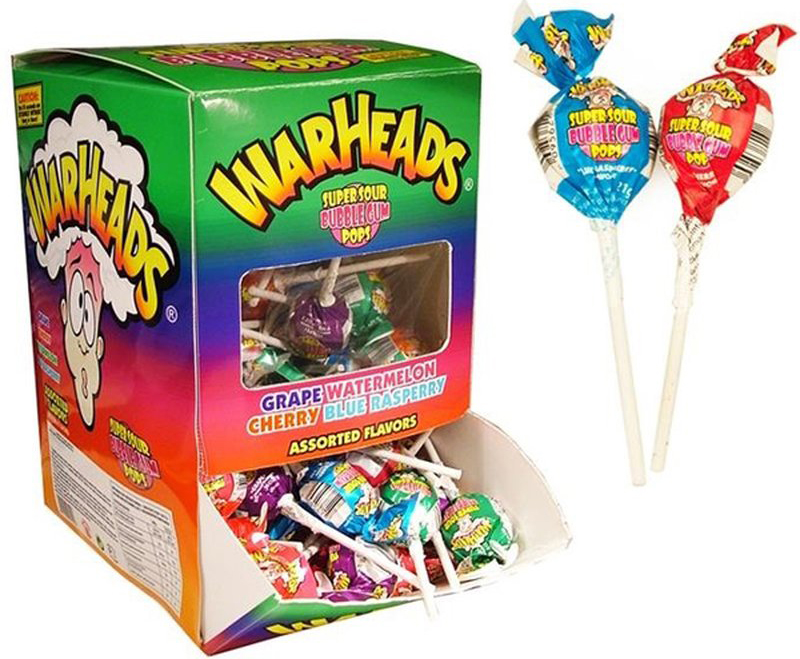 Warheads Super Sour Bubblegum Pops á 17g (mit Grape-, Watermelon-, Cherry- und B