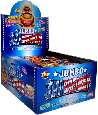 Zed Jumbo Jawbreaker USA Harte Außenhülle mit weichem Kaugummi Kern (Watermelon, Cola, Blue Razz, Wild Cherry) á 65,8g im 20er T-Dsp. (Halal)