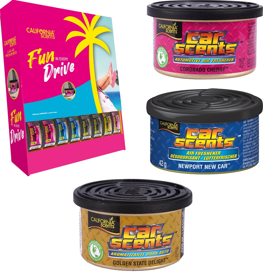 California Scents 36er MIX mit Gratis Thekendisplay ca. 39x45x13cm inkl. 12x Coronado Cherry (91474), 12x New Car (91902); 12x Golden State (91893)
