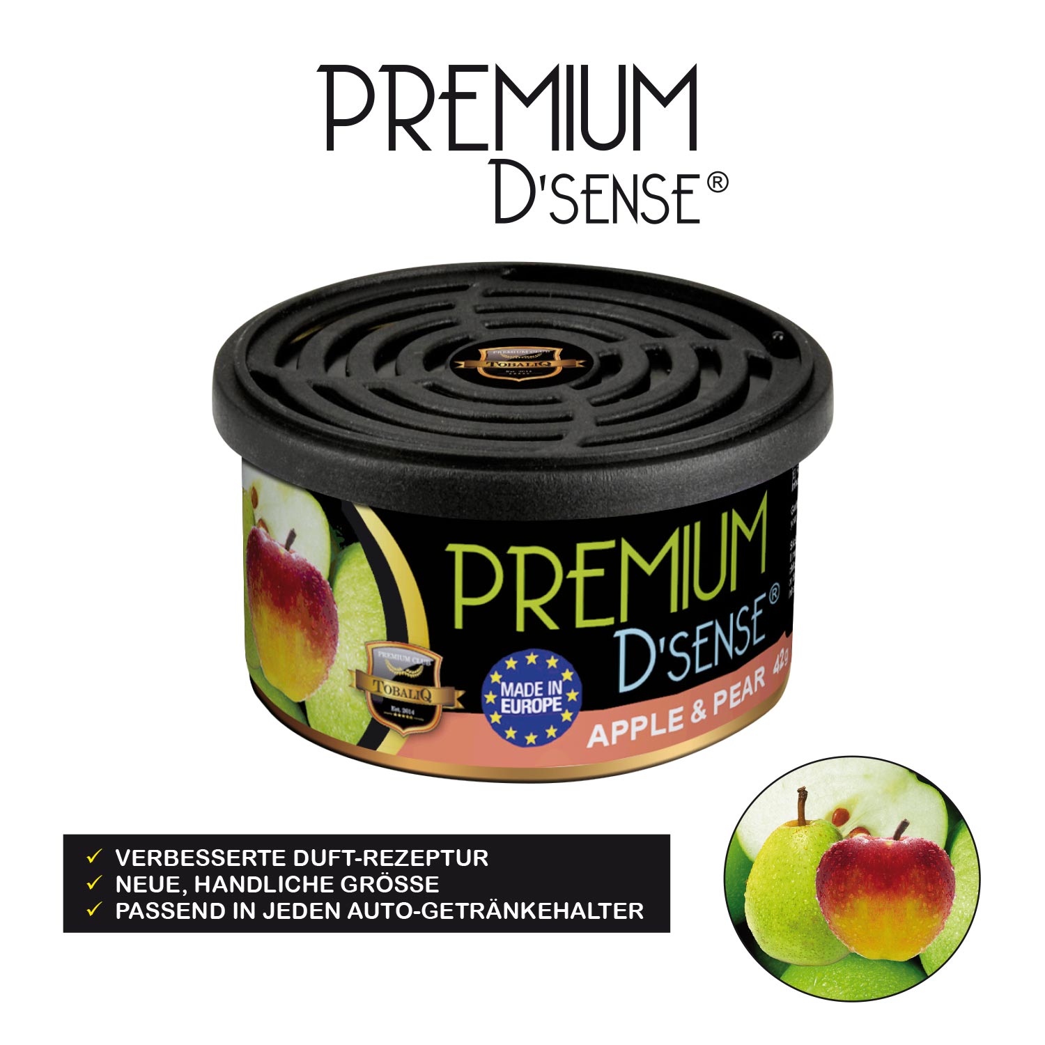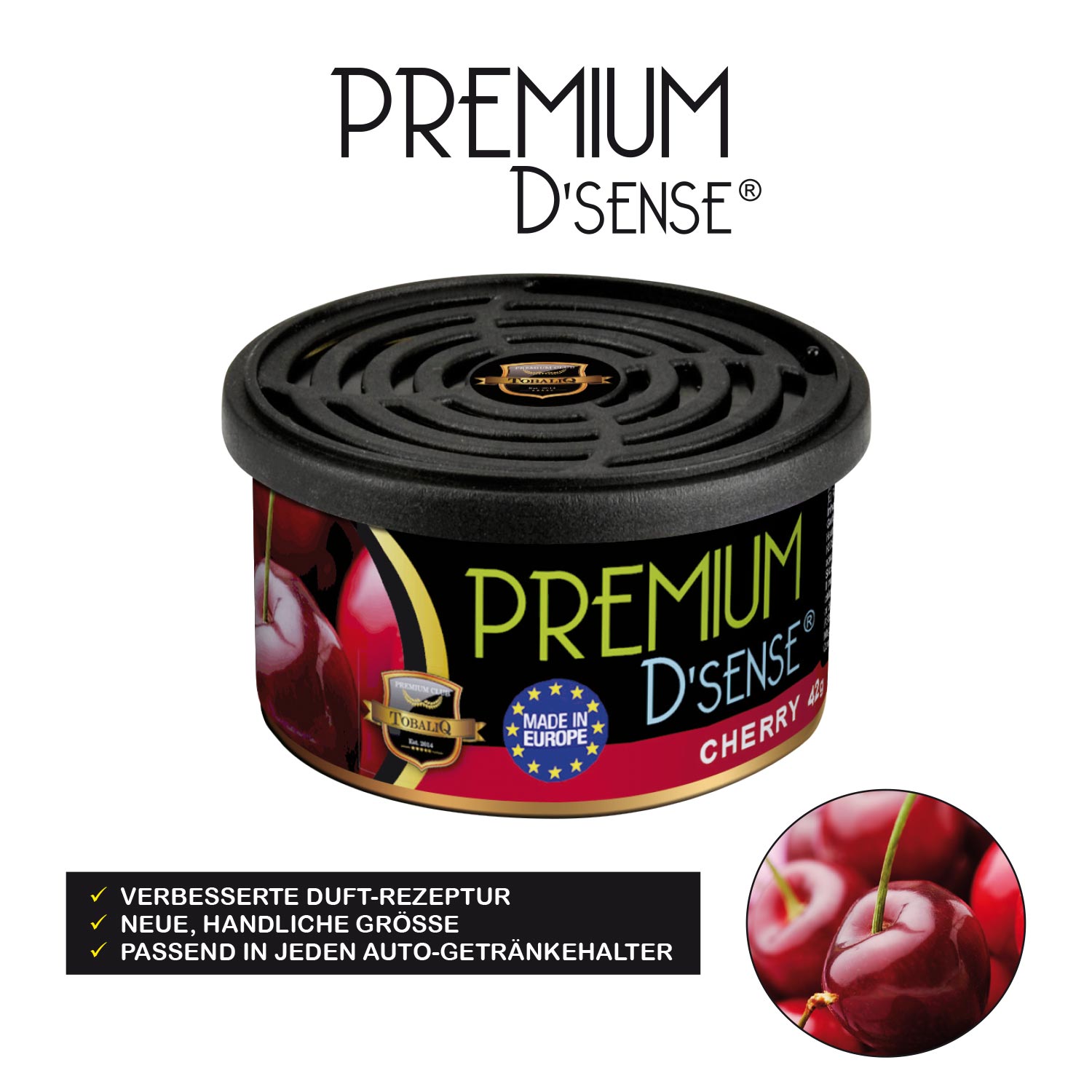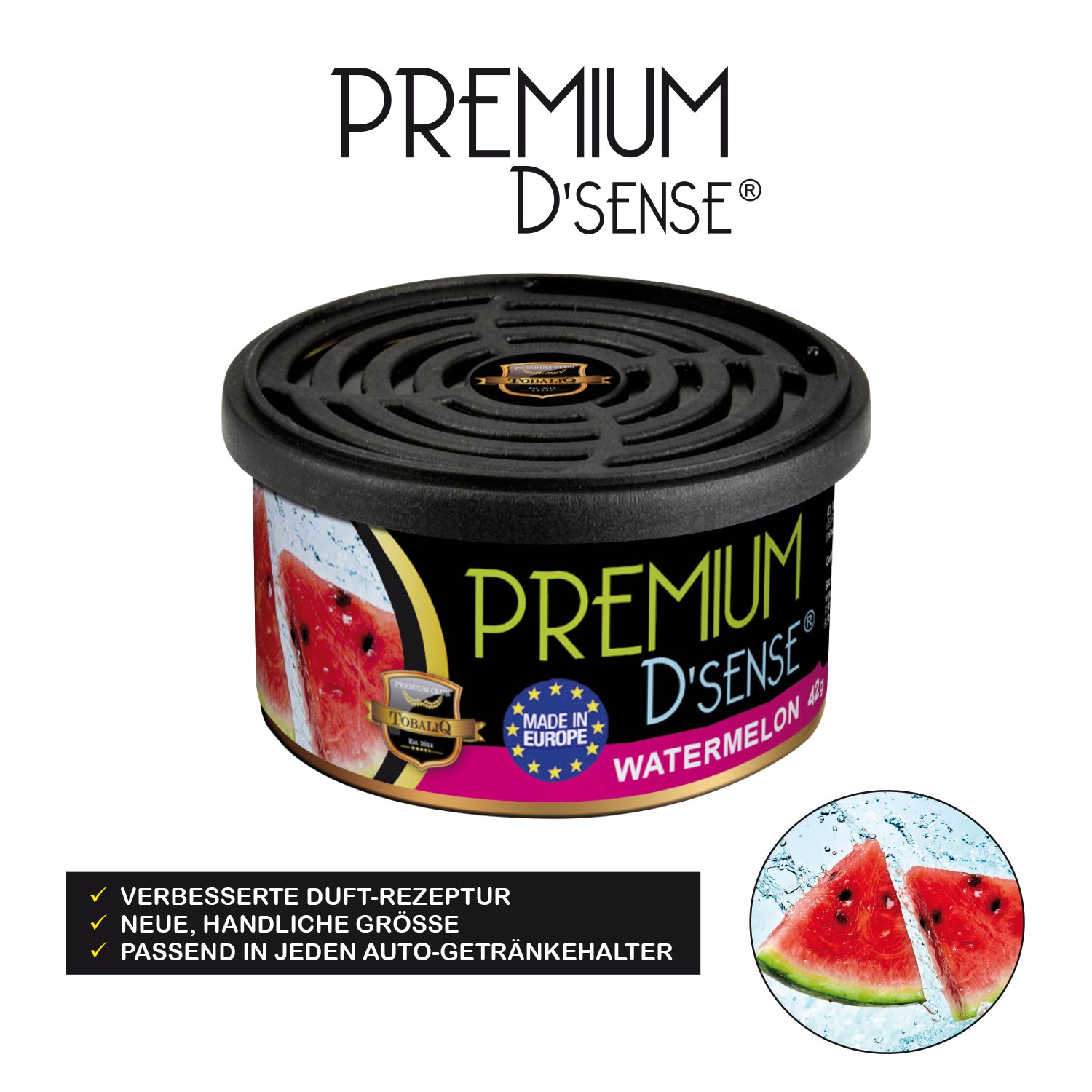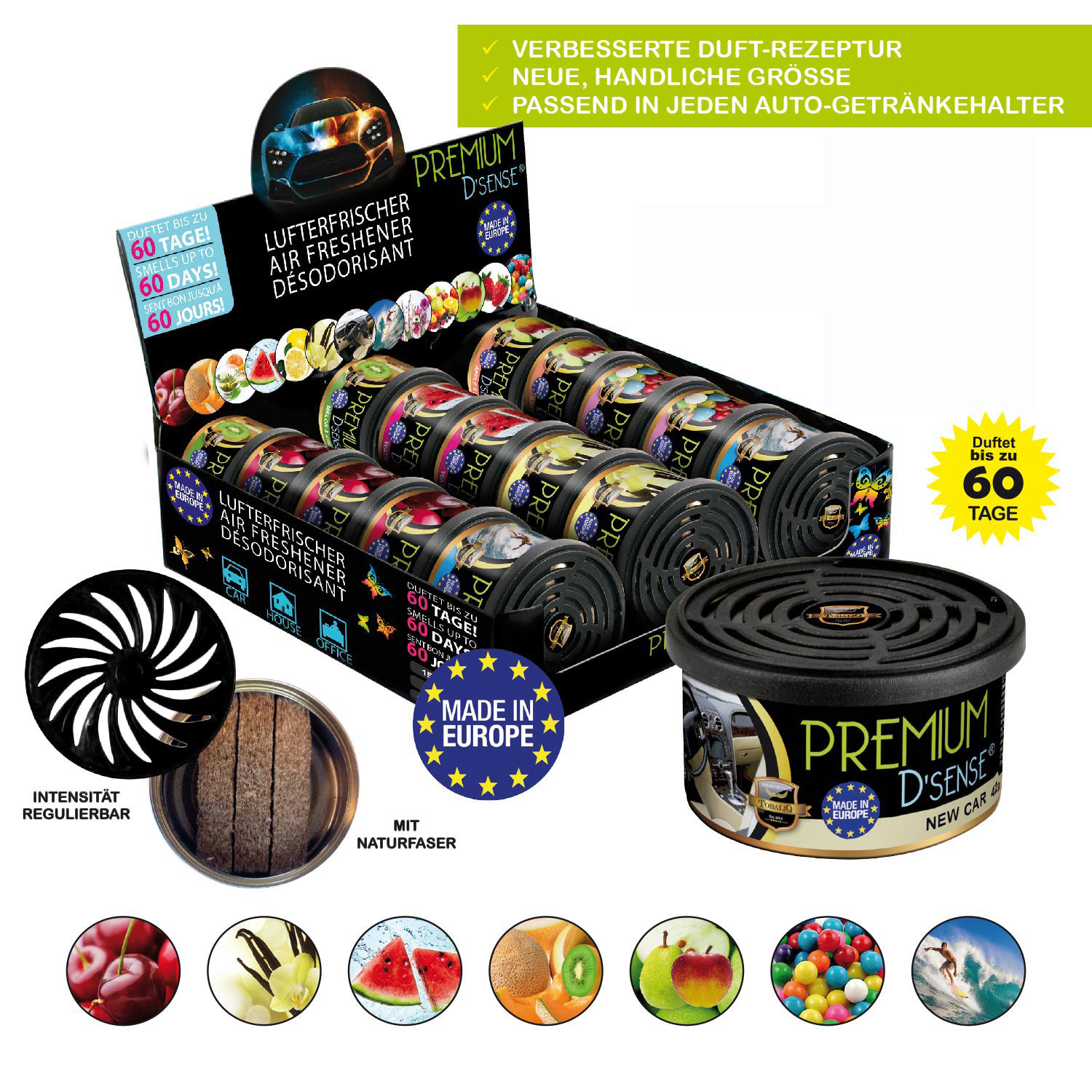 Premium D´Sense Car Scents Airfresher 7/s 3x Cherry, 2x Vanilla, 2x Watermelon, 2x Melon & Kiwi, 2x Apple & Pear, 2x Bubble Gum, 2x Sport Fresh. 42g im 15er T-Dsp