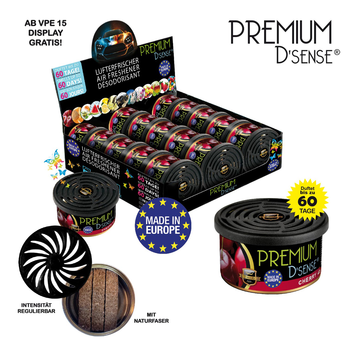 Premium D´Sense Car Scents Airfresher CHERRY 42g im 15er T-Dsp