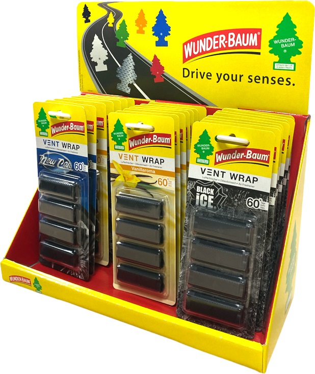 Wunder-Baum 24er Vent Wraps Thekenaufsteller 3/s 4 Vent Wraps je Blisterkarte (Black Ice, New Car, Vanillaroma)