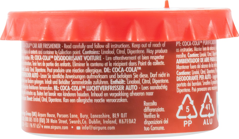 AirFlair Coca Cola Iconic Cap Lufterfrischer Duftdose mit ikoischem Flaschen Dec