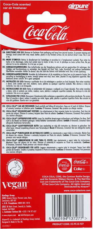 AirFlair Coca Cola Papier Lufterfrischer in Dosenform mit Original Coca-Cola Duf