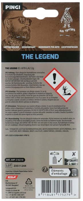 PINGI AIR TATTOO - The Legend Duft Lufterfrischer im Hipster Skull Tattoodesign ca. 30 Tage Duft