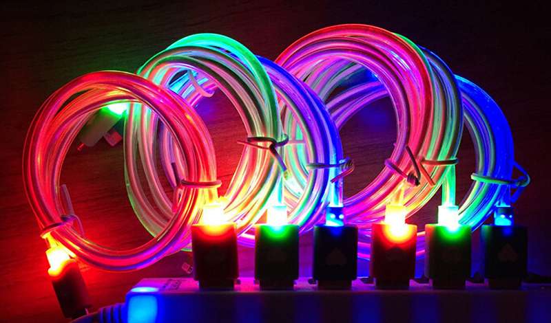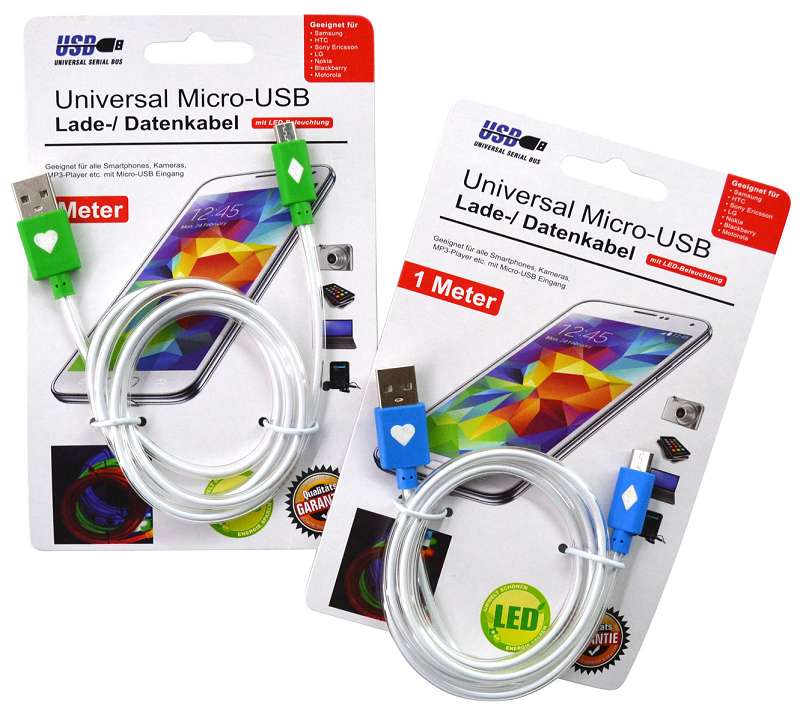 Lade-/Datenkabel ""LED Colourfull""blau,grün,rot Micro USB 1m Blisterkarte"