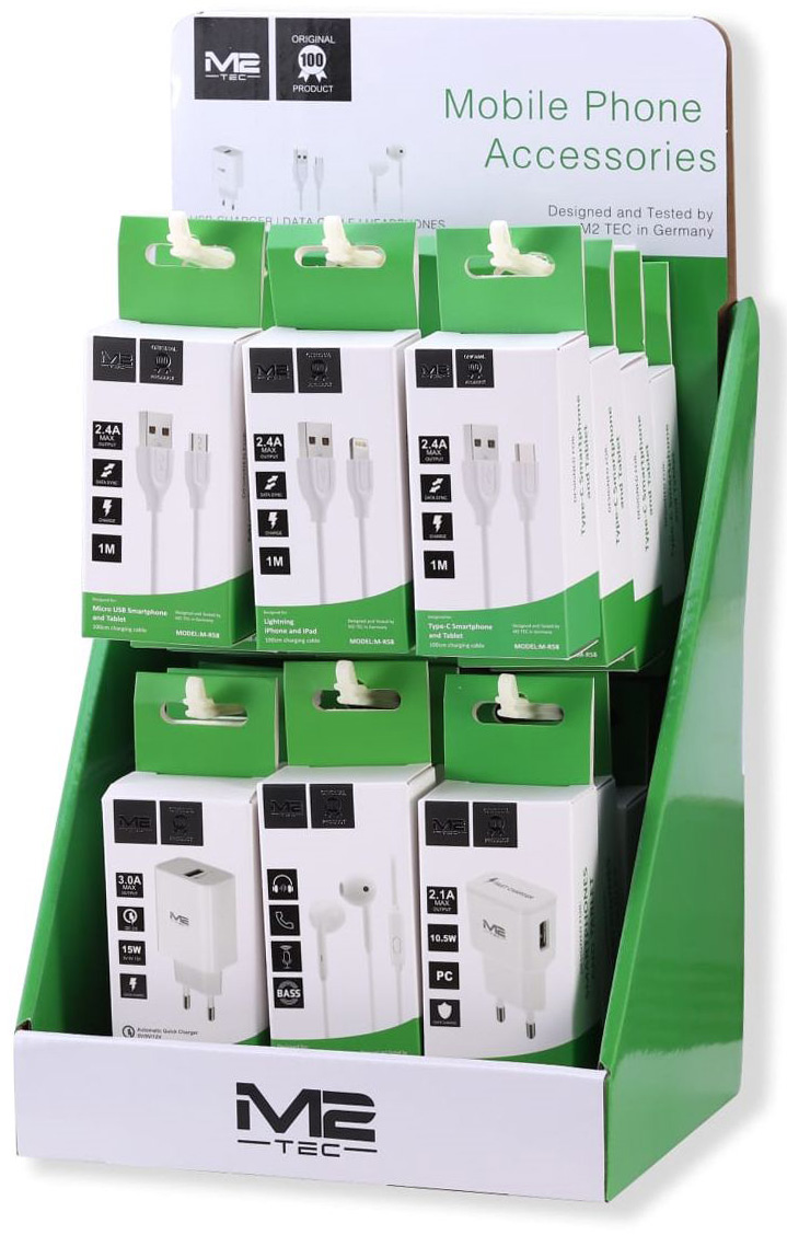 Ladekabel MIX 4xMicro USB, 4xLightning, 4xType-C alle 1m,&2,4A max output 4x USB Ladegerät 2,1A, 4 USB Ladegerät Quick Charger 3,0A, 4xMini Kopfhörer auf 24er T-Dsp.