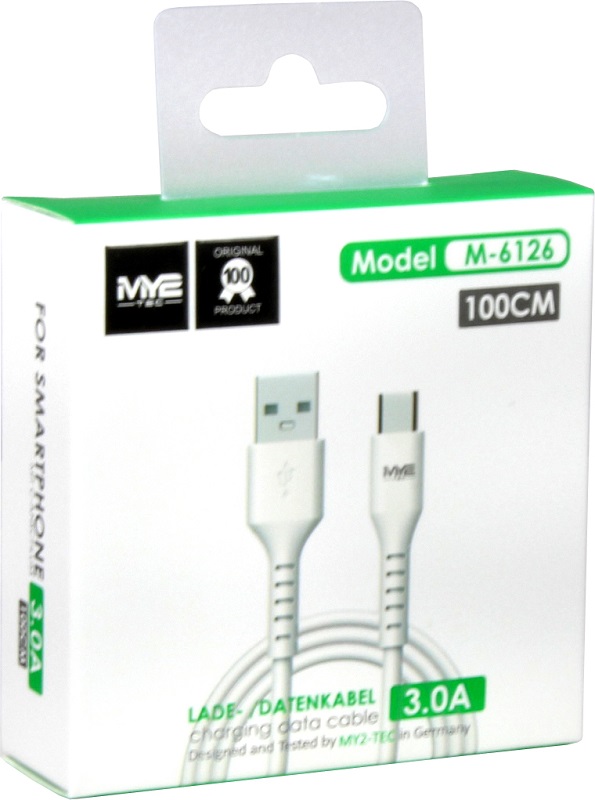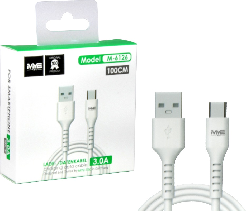 Ladekabel USB zu USB-C Datenkabel 3.0A in Weiß ca. 100cm