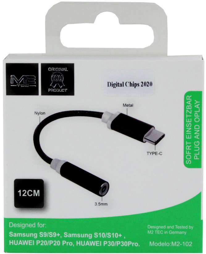 USB C auf Aux 3,5mm Klinkenstecker (weiblich) ca. 12cm schwarz weiß