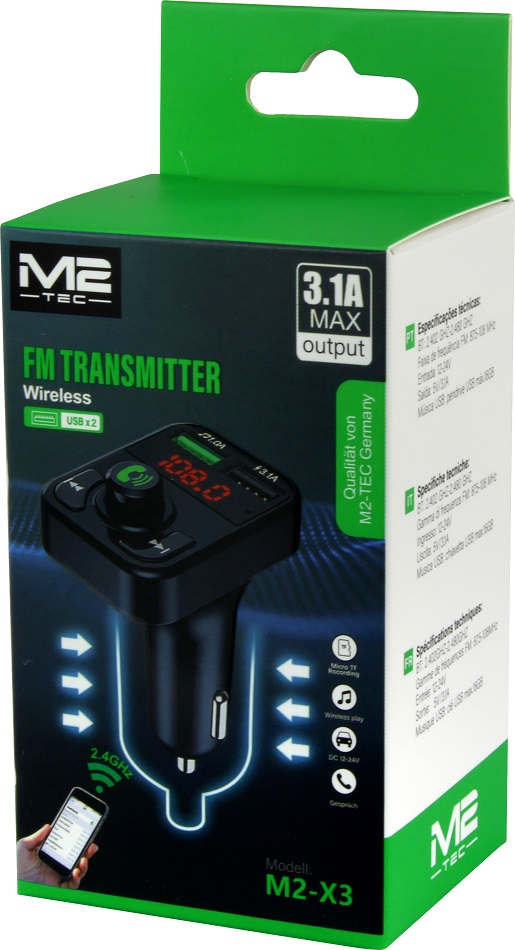 Auto FM-Transmitter mit Bluetooth 5.0, Schnellladefunktion, Freisprecheinrichtung und 2x USB-Anschluss 3,1A 2,4GHz
