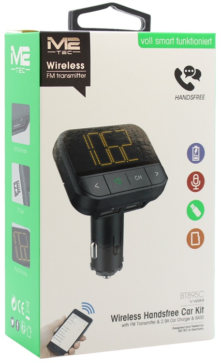 Auto FM-Transmitter mit Freisprecheinrichtung und 2x USB-Anschluss