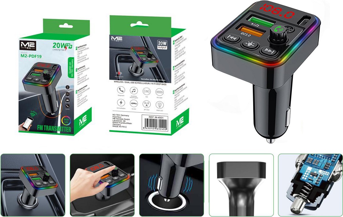 Auto FM-Transmitter mit Schnellladefunktion 20W & Freisprecheinrichtung & LEDs