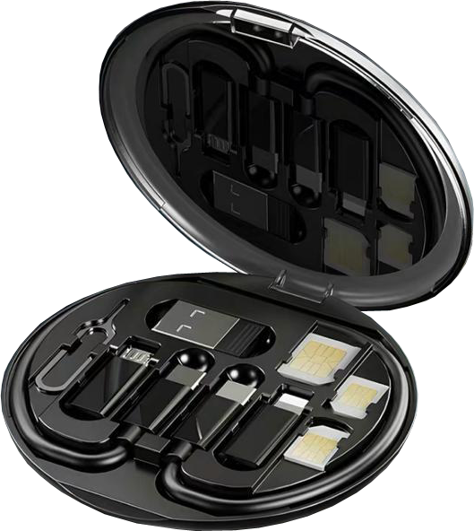 Green Lyca kompaktes Datenkabel Set 2x USB-C, 1x Lightning, 1x Micro USB, 1x USB, 1x SIM-Stift & 3 Fächer für SIM Karten