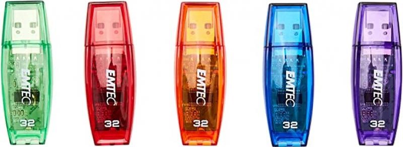 USB Sticks 80er Mix EMTEC 32 GB/2.0 DataTraveler C410 5/s (Grün, Rot, Orange, Bl