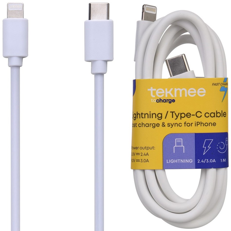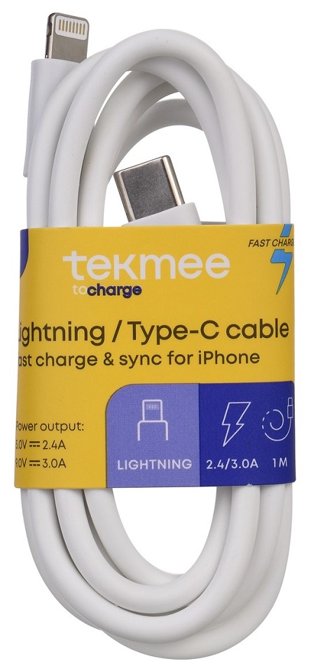 Tekmee USB Type-C zu Lightning Fast Charge Kabel weiß 1m 2,4-3,0A Charge&Sync BU