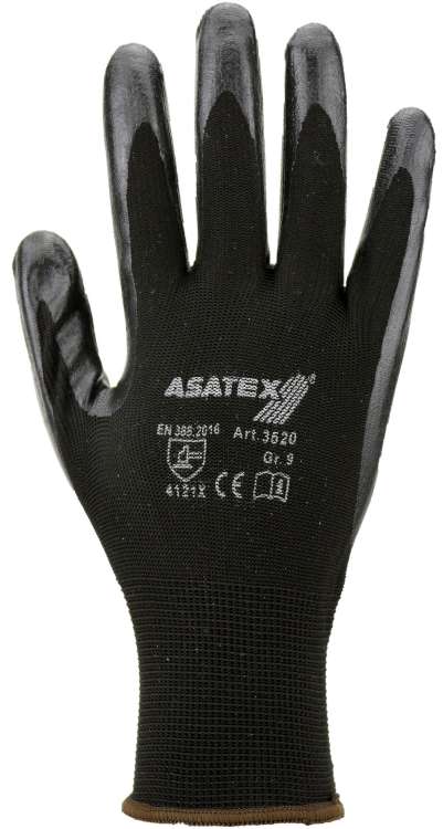 Nitril-Handschuh Polyester Farbe SCHWARZ Handrücken offen EN388:2016 Kat2(3.1.3.1.X)Größe 10 12 Paar