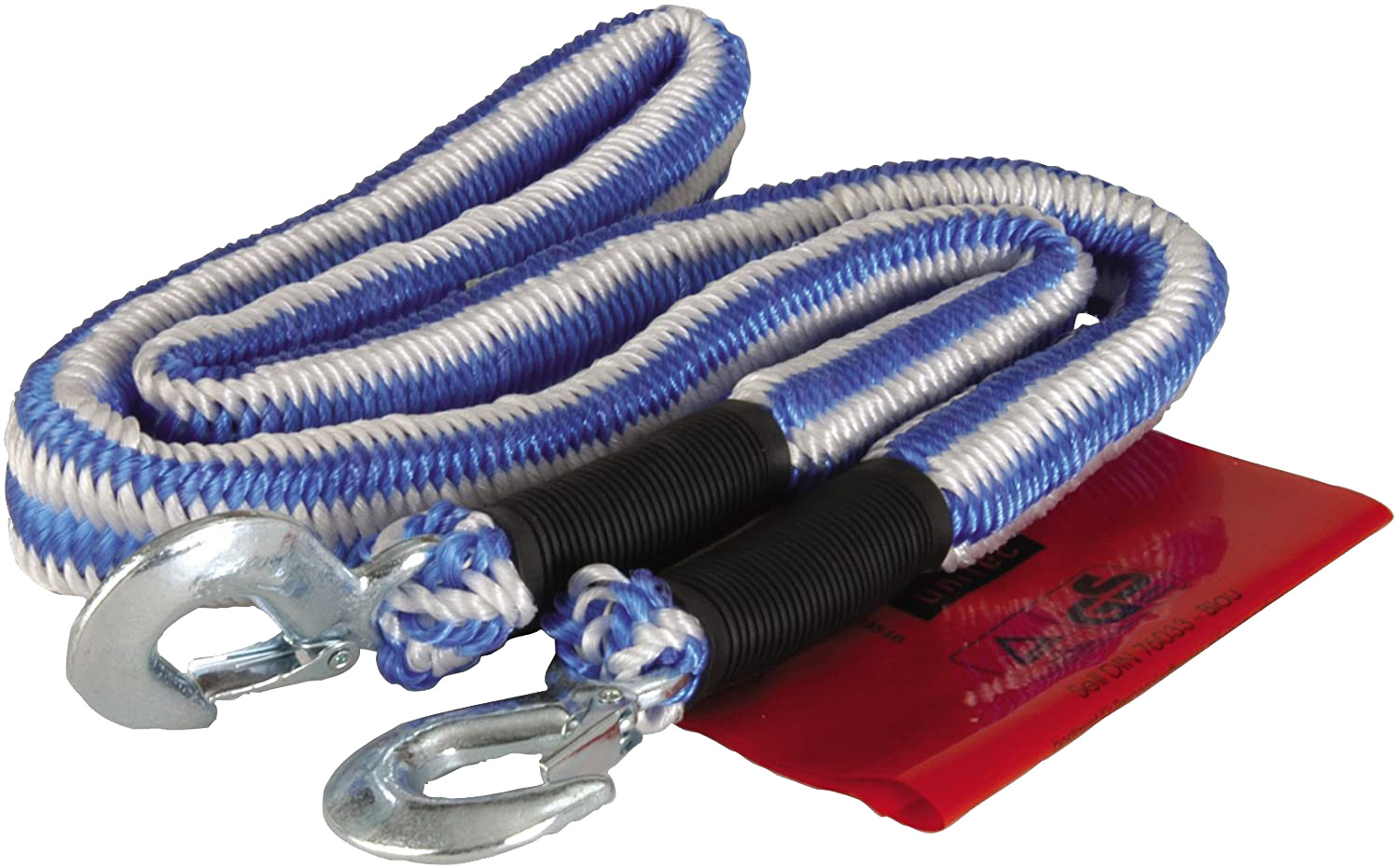 Abschleppseil Superstretch/Gummiexpander 4m - 2500kg Karabinerhaken&Scheuerschutzmanschetten + rote Sicherheitsfahne Tasche
