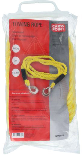 Carpoint Abschleppseil 3m Ø18mm mit 2 Sicherheitshaken Gelb, maximale Anhängelast: 5000KG