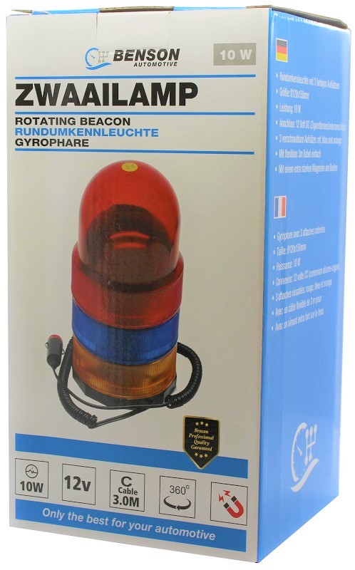 LED Rundumleuchte 3 auswechselbaren Aufsätzen rot, blau, orange 3m flexibiler Kabel 10W mit Magnet Ø120x150mm 12V - DC