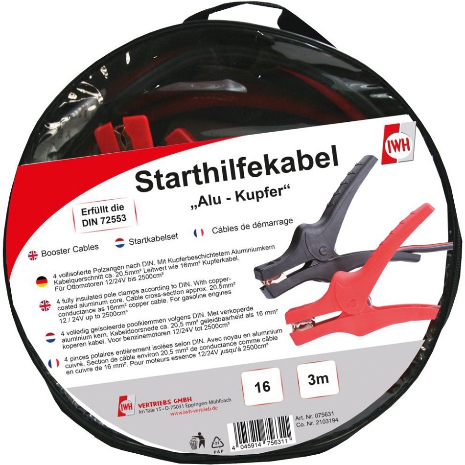 Starthilfekabel/Profi Starterkabel ALU-PRO Ø25mm² 12-24V Vollisolierte Polzangen aus schlagfestem Kunststoff, mit Kupferbeschichtetem Aluminiumkern 3,5m gem. DIN-Norm 72553, in wiederverschließbarer Nylontasche