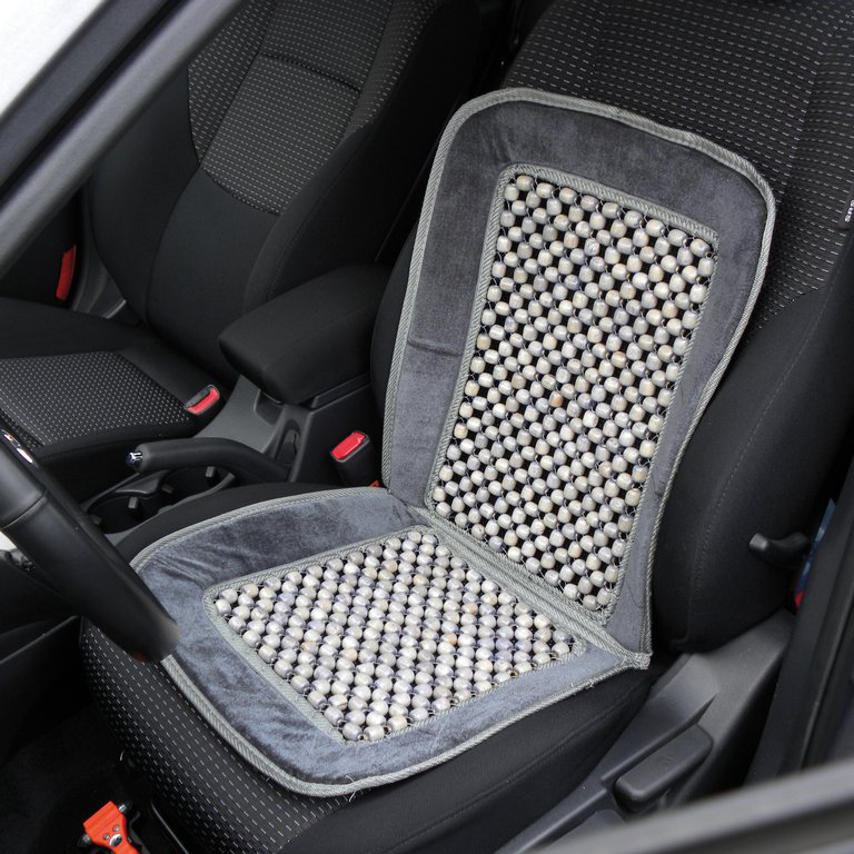 Carpoint Holzkugel Sitzauflage Deluxe Grau ca. 94 x 44cm, universelles Wulstkissen mit ventilierender & massierender Wirkung durch Holzperlen welche die Durchblutung anregt, Belüftungseffekt im Sommer