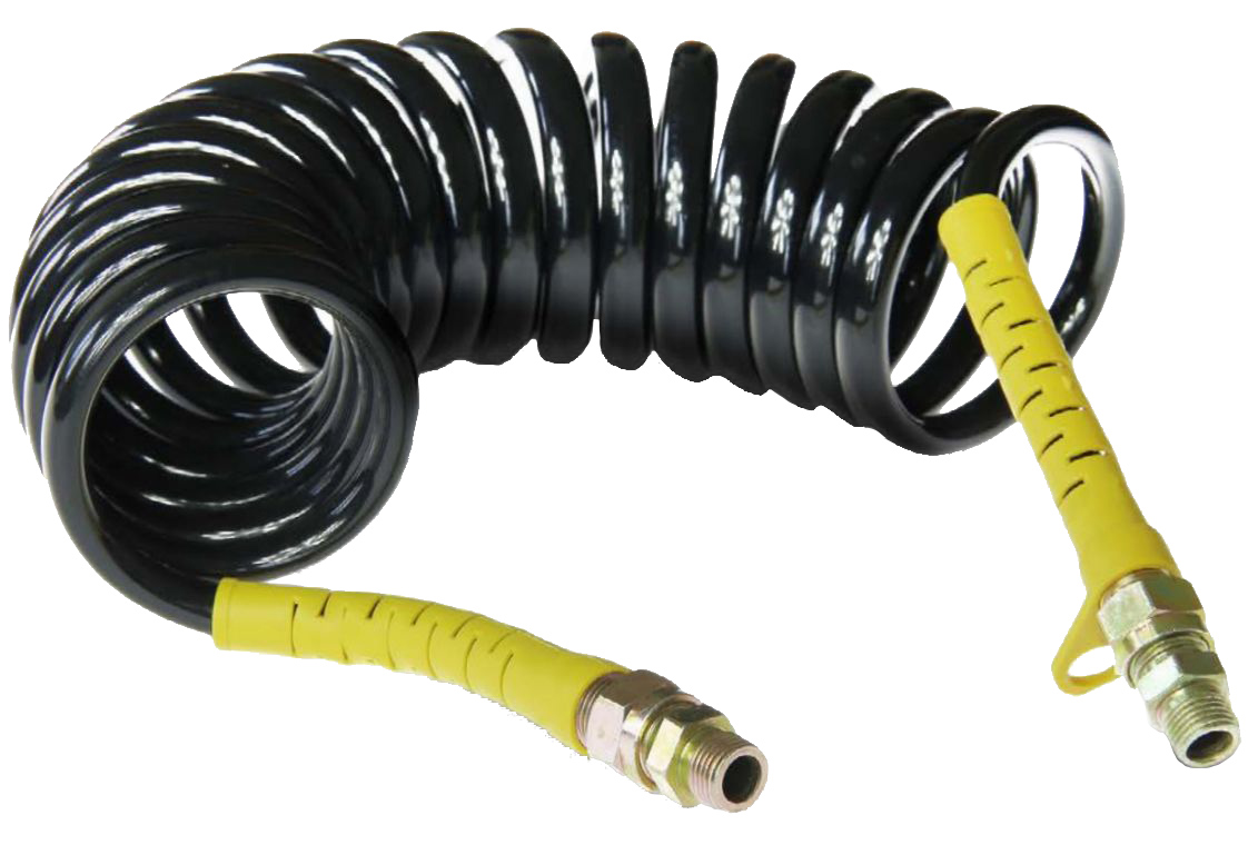 Druckluftschlauch Luftwendel mit zwei Adaptern M16 mit gelber Markierung