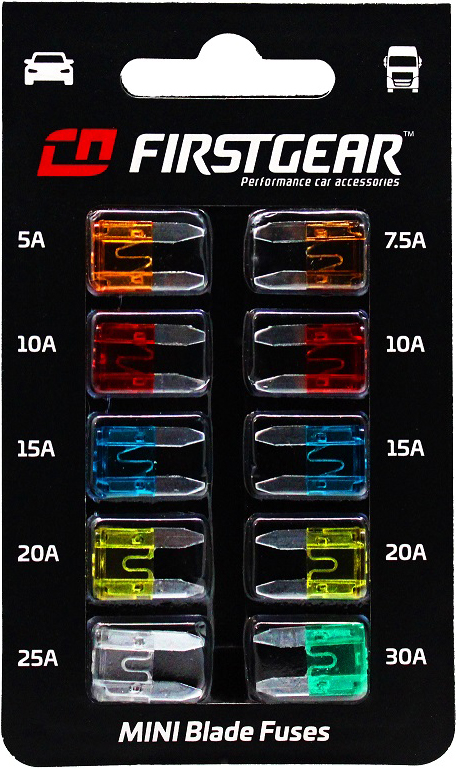KFZ-Flachsicherungen FirstGear UNI MINI Ersatzsicherungen 10St. Blister(1 x 5A, 1 x 7.5A, 2 x 10A, 2 x 15A, 2 x 20A, 1 x 25A, 1 x 30A)