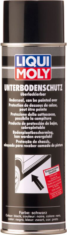 Liqui Moly Unterboden-Schuttz schwarz in 500ml Dose, lösemittelhaltiger & bitumenfreier Unterbodenschutz auf Basis von Kautschuk & Harzen, elastischer Schutzbelag, gute Anti-Dröhnwirkung, überlackierbar nach Trocknung , schnelltrocknend, nebelarm bei der Verarbeitung