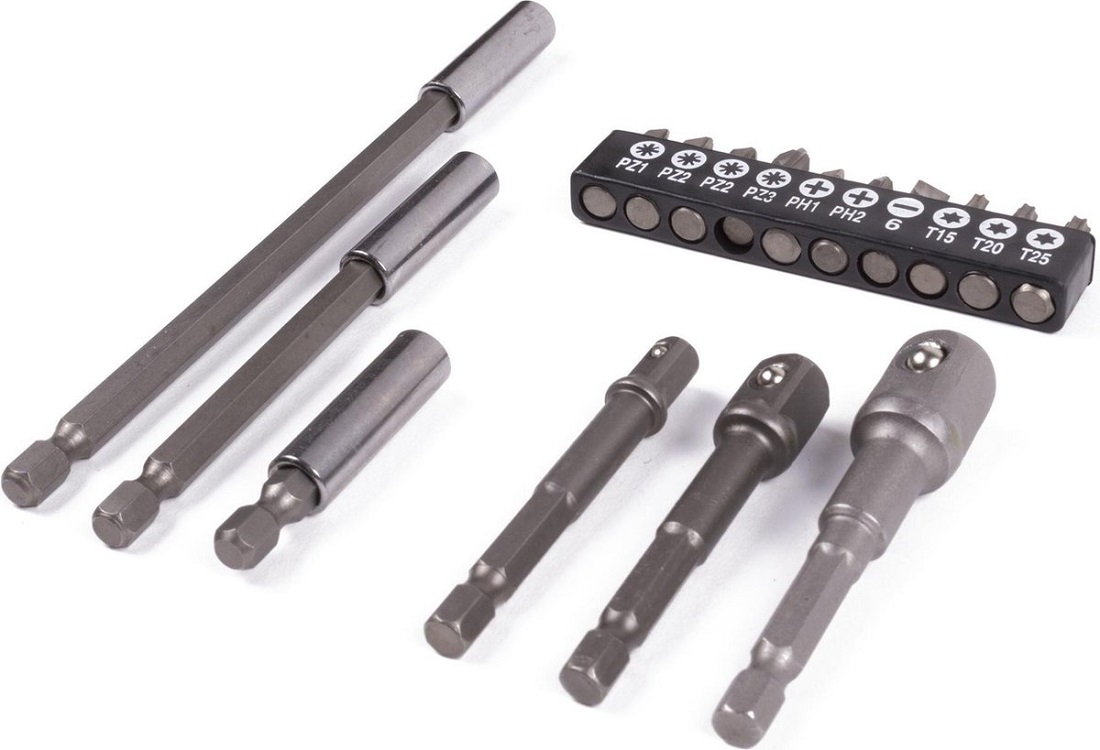 Bit-Steckschlüssel Verlängerungssatz 16tlg. Inkl. 10 Bits + 6 Verlängerungsadapter auf Blisterkarte