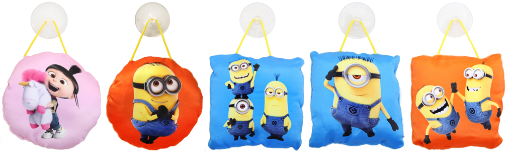 VE:10 Minions Kissen mit Saugnapf, 5-fach sort., versch. Formen&Motive, ca. 12,5 x 12,5cm