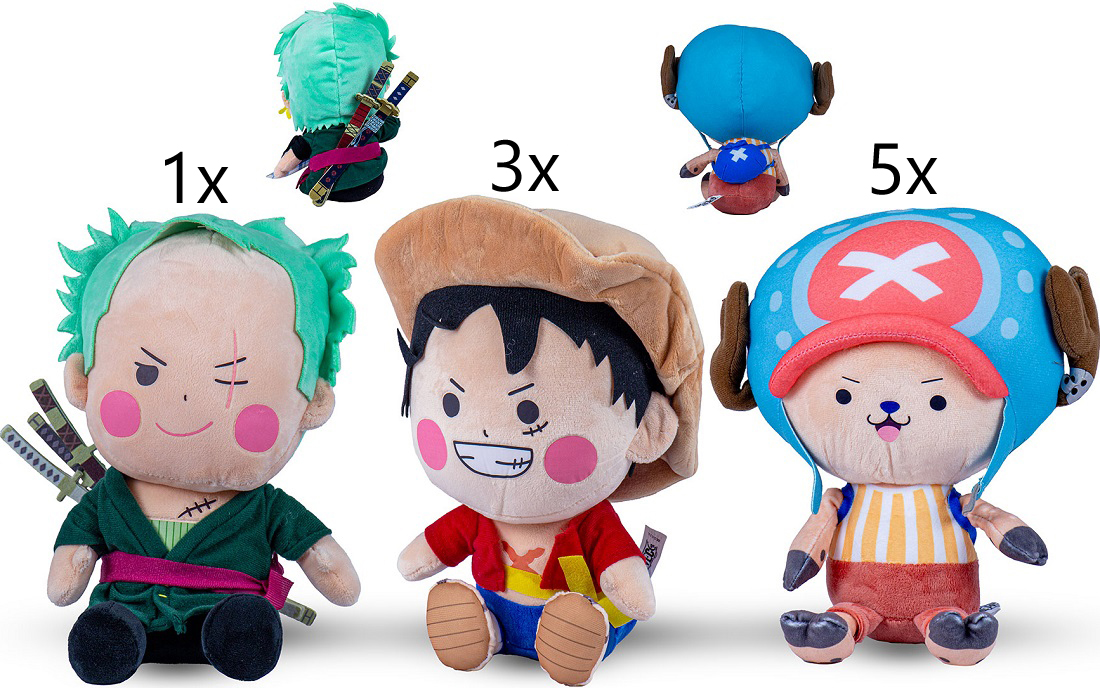One Piece Chibi Plüsch sitzend 3/s (5x Chopper, 3x Ruffy, 1x Zoro) ca. 25cm