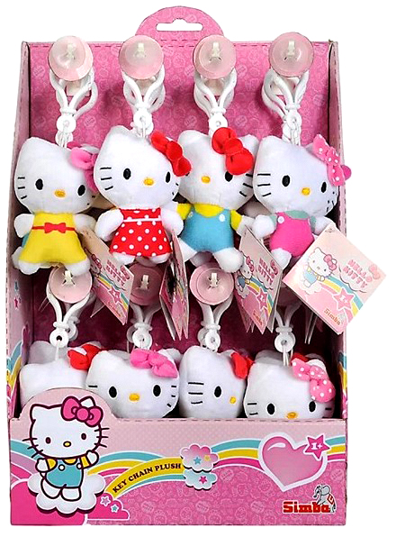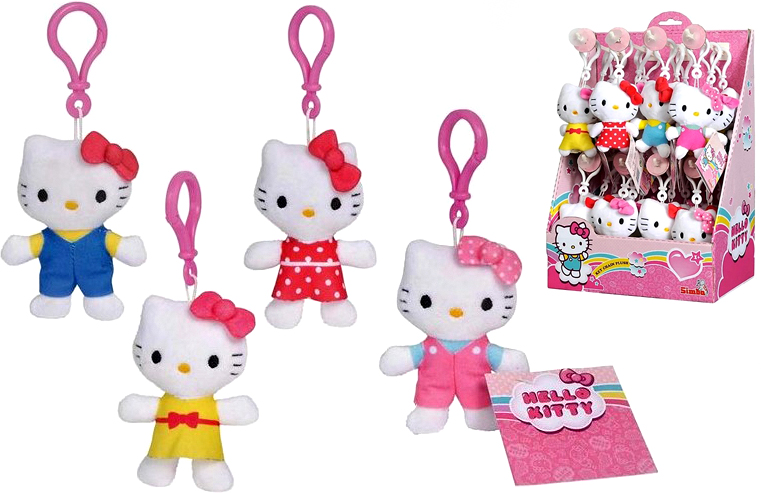Plüsch Hello Kitty Bagclips ca. 10cm 5/s (Blau, Rot, Gelb, Pink) in 24er T-Dsp.