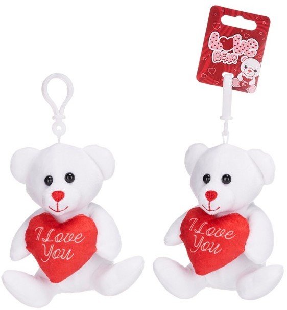Plüsch Bär Weiß mit Herz "I Love You" & Bagclip ca. 12cm im 12er T-Dsp.