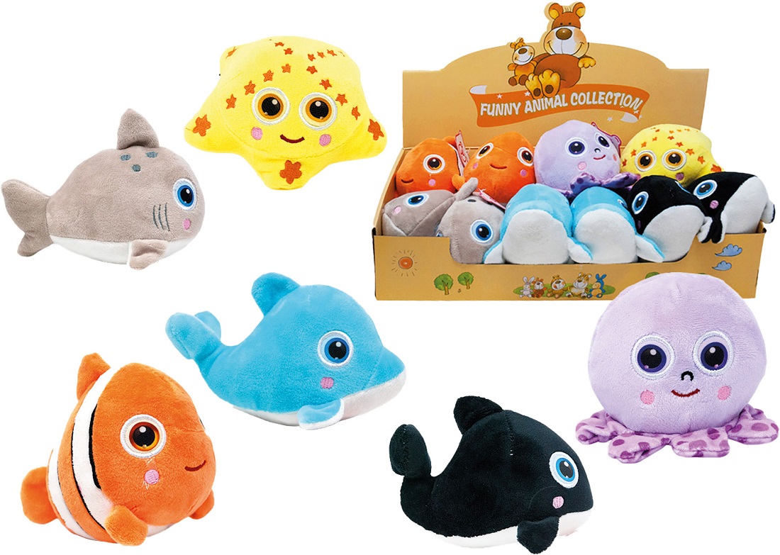 Plüsch Meerestiere mit niedlichen Gesichtern ca. 13cm 6/s im 12er T-Dsp. (Seeste
