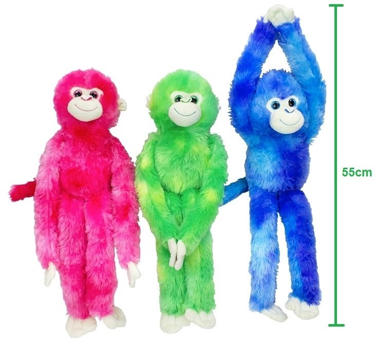 Plüsch Affe mit Klett an den Händen & Schlenkerbeinen in knalligen Farben ca. 55cm 3/s (Pink, Grün, Blau)