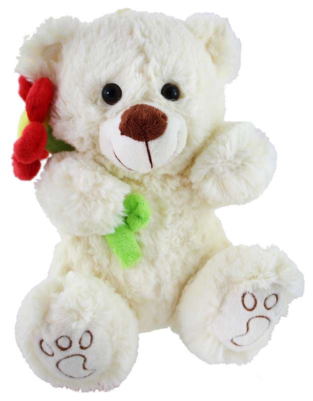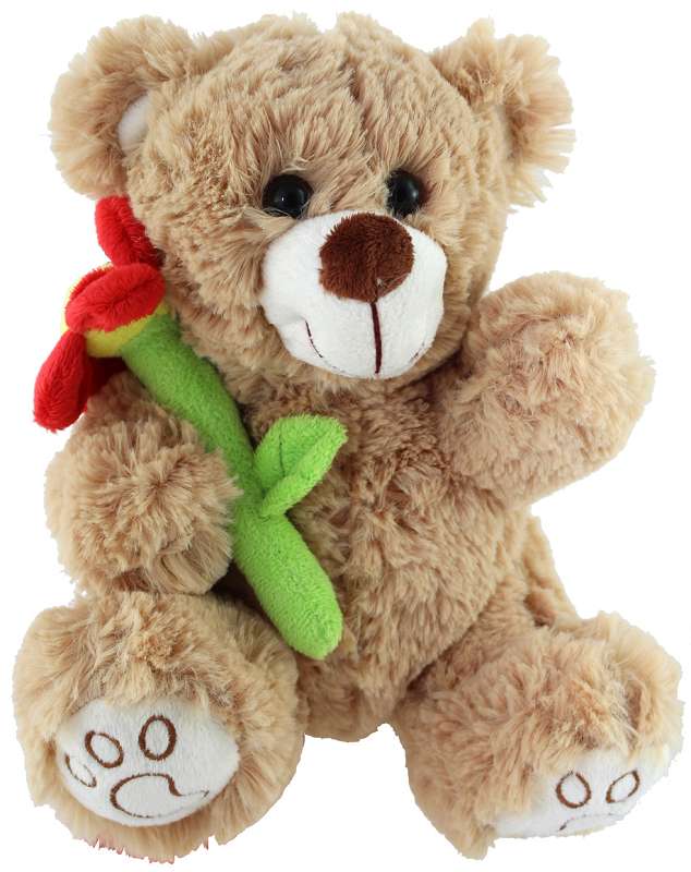 Plüsch Bär mit angestickter Blume, 2-fach sort, sitzend, ca. 20cm