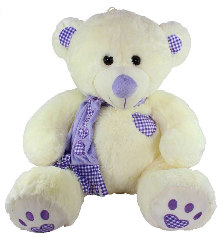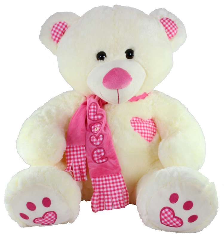 Plüsch Bär mit gesticktem Herz & Schal, sitzend ca. 60 cm, 2-farbig