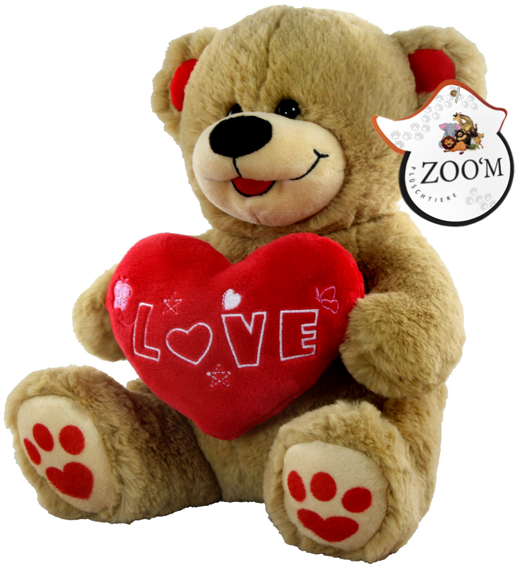 Plüsch Bär mit Herz&Schleife LOVE Stickerei mit roten tatzen, ca. 17x25 cm