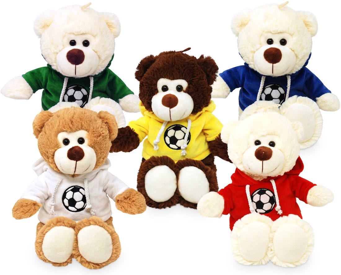 Plüsch Bär sitzend mit Hoodie & Fußball Stickerei ca. 20cm 5/s (Grün, Blau, Gelb, Weiß, Rot)